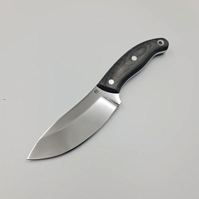 Нож Норвежец, исполняется в двух вариантах – из сталей 110Х18 и дамаской. Форма ножа напоминает финку НКВД за счет развитой гарды и упора под мизинец. В данном случае, гарда не прямая, как у финки НКВД, а с небольшим скосом для удобства хвата при упоре большим пальцем. Так же скос на нижней стороне гарды под указательный палец – исключает риск соскальзывания руки на лезвие. Материал рукоятки дерево граб, металлические части из латуни и пластиковые проставки для предотвращения образования зазоров. На клинке дол – облегчает нож, небольшие фальшь-спуски, что делает клинок острее и увеличивает проникающие способности. Красивый, стильный и современный нож по мотивам легендарной финки НКВД.