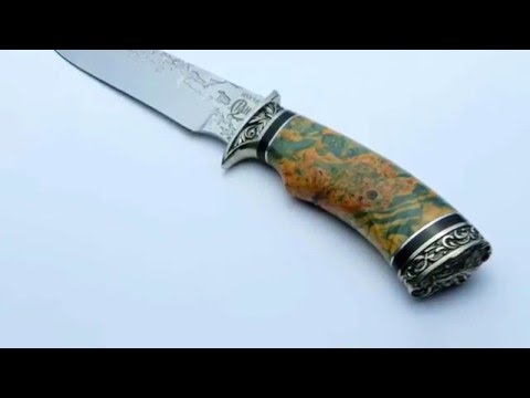 Нож Клык, с клинок изготовленным из высоколигированной нержавеющей стали 95Х18 и рукоятью из стабилизированного капа клена, данная древесина не ссохнется со временем и имеет красивый цветной узор. Литые элементы — навершие и больстер (упор), изготовленые из мельхиора, выполняют роль декора, а также обеспечивают безопасную работу с ножом, не позволяя руке соскочить на лезвие и пораниться. Спуски на клинке от половины обуха, это делает клинок крепче, увеличивая «выносливость» ножа при тестировании на излом, плюс сквозной монтаж клинка. Подпальцевая выемка на рукоятки ножа и на клинке позволяет укоротить клинок за счет специального хвата и использовать, как шкуросъемный нож. Геометрия клинка и форма рукоятки позволяет использовать нож, как универсальный, он подойдет для разделки дичи, шинковки овощей или нарезки продуктов в лесу, а также, как отличный подарок мужчине, охотнику или коллекционеру. Нож сертифицирован и разрешен к свободному ношению на территории РФ. Вы можете купить данный нож с доставкой на дом, позвонив по телефону или оформив заказ на сайте, а также приехав к нам в магазин.