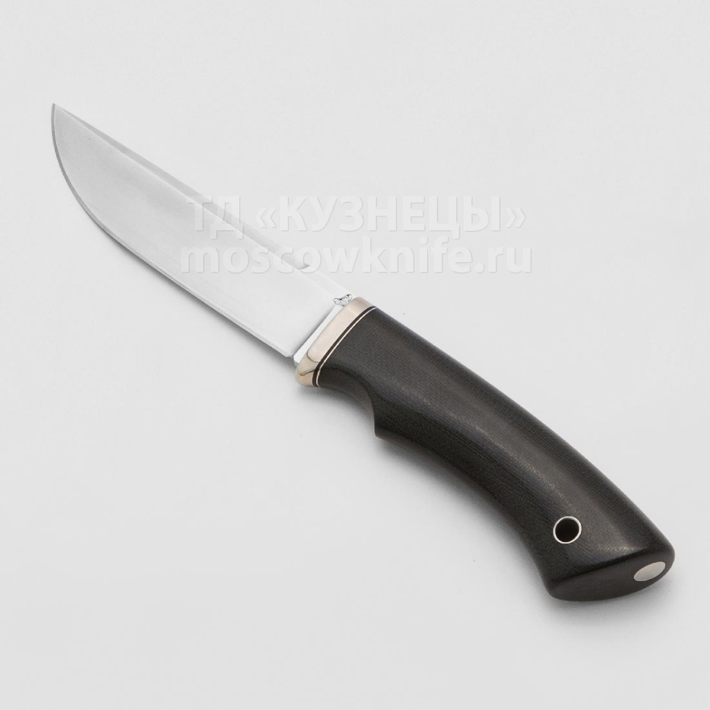Нож из стали S390. Очень сложная и ювелирная слесарка – собран нож идеально. Стыки дерева с металлом, а также гарды с клинком подогнаны идеально, нет никаких, даже минимальных, зазоров и неровностей. Фальшь спуски на обухе не стандартные: дело в том, что подобные спуски, как правило, делают кончик острым, но тонким. В данном же случае, фальшь спуски выведены на самый кончик, и остриё при этом, имеет максимальное утолщение. Можно не боятся, что клинок сломается при работе на изгиб по твердой поверхности – кости или дереву. Это важно для клинка изготовленного из стали, твердостью под 70 ед. Сталь изготовлена в Швеции на металлургическом концерне Бёллер. Нож ручной работы Российского производства. Отличная заточка и максимальная твердость.