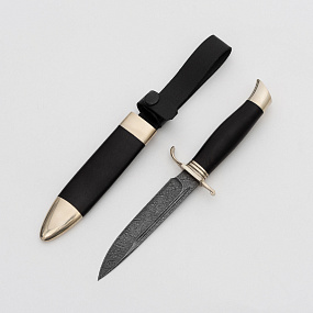 Нож Финка НКВД в деревянных ножнах из дамасской стали (Дамаск, Граб, Мельхиор)