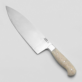 Нож изготовлен из инструментальной штампованной стали Х12МФ. Данная сталь является высококачественным и популярным материалом для изготовления охотничьих ножей. Благодаря легирующим добавкам - хрому, молибдену и ванадию, ножи из стали Х12МФ обладают высокой прочностью и износостойкостью. Х12МФ на особом счету у охотников, ведь сплав прекрасно подходит для профессиональных охотничьих ножей, что подтверждается количеством шкуросъемных ножей, изготавливаемых российскими ножевыми мастерскими. При этом, данная сталь используется для изготовления практически всех типов ножей: и шкуросъемных, и городских складных, и кухонных для профессиональных поваров. Благодаря содержанию хрома - 12%, сталь почти (именно почти) не ржавеет. Однако, при эксплуатации нужно помнить, что это не нержавейка и протирать нож после работы. Импортным аналогом Х12МФ считается D2, имеющий точно такой же химический состав. Не смотря на очень неплохие показатели, которыми обладают ножи из стали Х12МФ, стоимость их находится в среднем ценовом диапазоне и это не может не радовать.