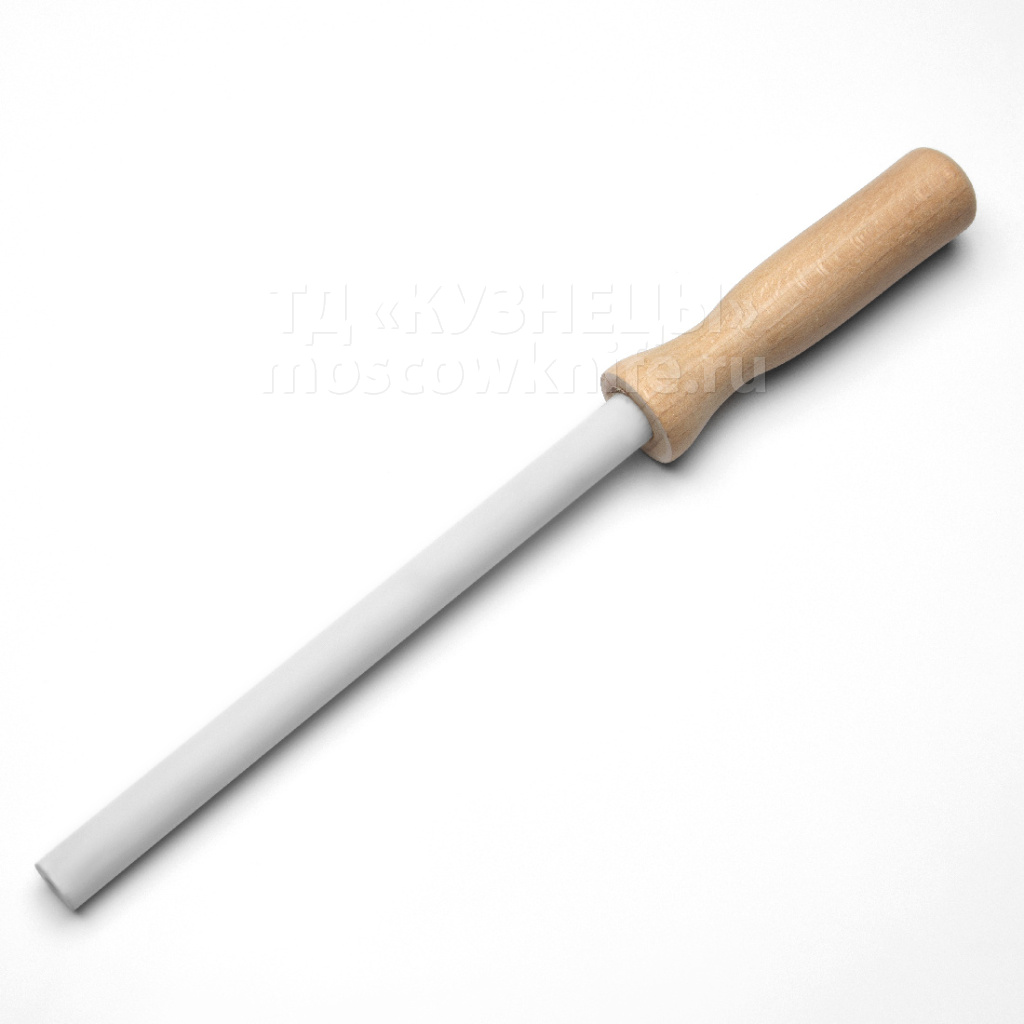 Керамический мусат с рукояткой из дерева, общей длинной 300 мм.